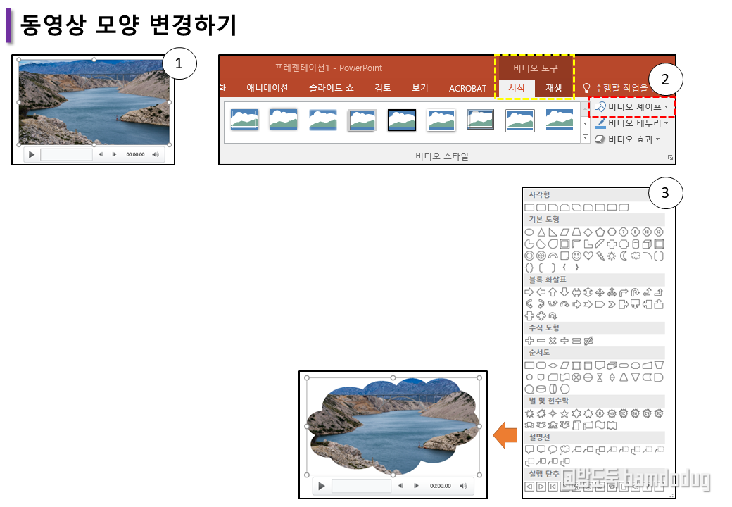 ② [ 비디오 도구 서식 ] 에서 비디오 셰이프를 클릭합니다.