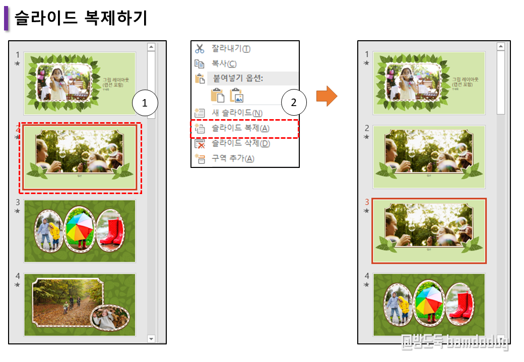 ② 마우스 오른쪽 - 슬라이드 복제를 클릭합니다.